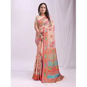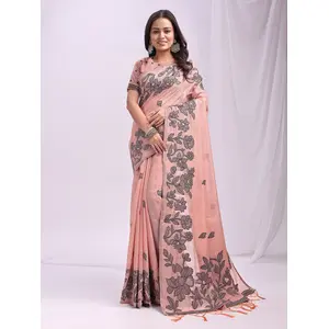 Peach Color Linen Cotton Fabric Wevon...