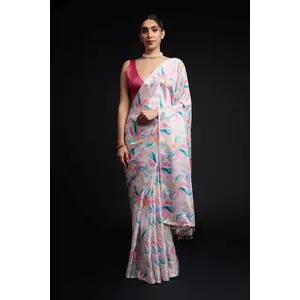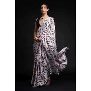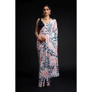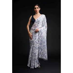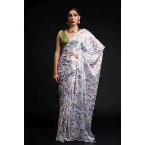 White Color Chinon Fabric Designer...