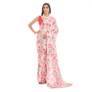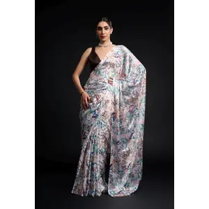 Cream Color Chinon Fabric Designer...