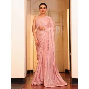 Pink Color Tissue Fabric Embroidery...