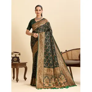 Green Color Wevon Jari Designer Soft...