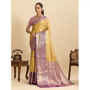 Yellow Color Silk Blended Woven Jari...