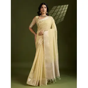 Yellow Color Tissue Linen Silk...