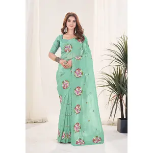 Pink Color Organza Fabric Embroidery...