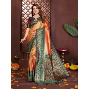 Orange Color Banarasi Tissue Silk...