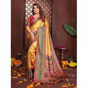 Mustard Color Banarasi Tissue Silk...