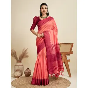 Pink Color Khadi Raw Silk Wevon Pallu...