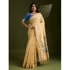 Cream Color Paithani Silk Woven...