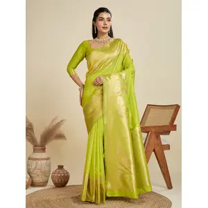 Parrot Green Color Wevon Jari Rich...