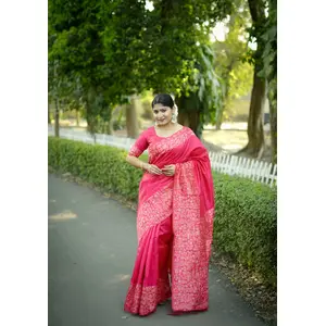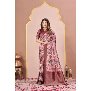 Wine Color Woven Meenakari Jacquard...