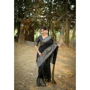 Black Color Handloom Raw Silk Fabric...