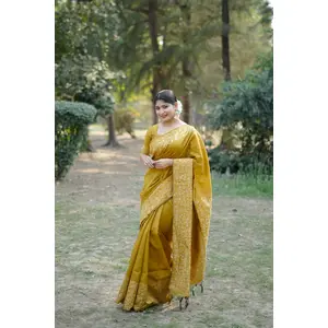 Mustard Color Handloom Raw Silk...