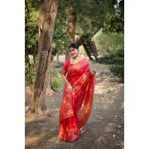 Red Color Handloom Raw Silk Fabric...