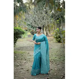 Sea Green Color Handloom Raw Silk...