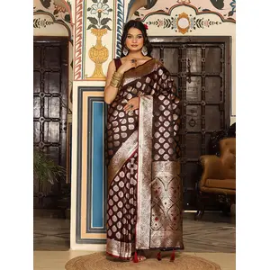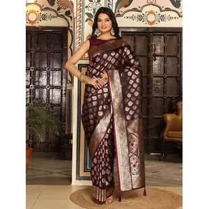 Wine Color Silk Blend Woven Designer...