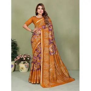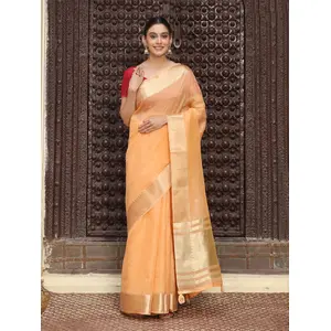 Orange Color Beautiful Linen Silk...