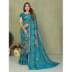 Teal Color Mul Cotton Fabric Designer...