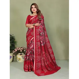 Red Color Mul Cotton Fabric Designer...