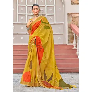 Yellow Color Beautiful Linen Silk...