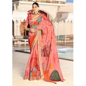 Peach Color Beautiful Linen Silk...