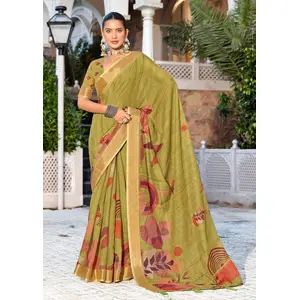 Olive Green Color Beautiful Linen...