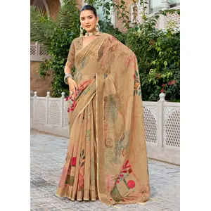 Beige Color Beautiful Linen Silk...