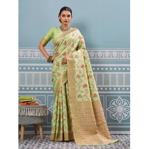 Pista Color Tissue Linen Silk Weaving...