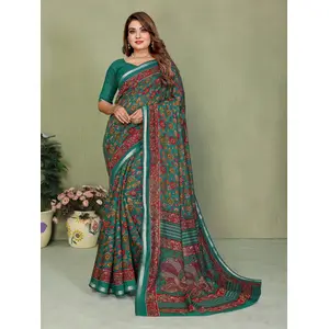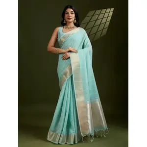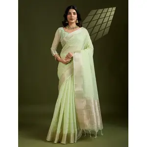 Sea Green Color Tissue Linen Silk...