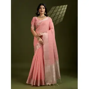 Pink Color Tissue Linen Silk Weaving...
