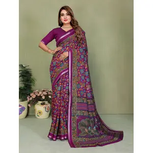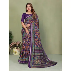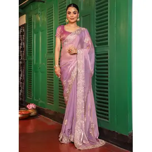 Purple Color Embroidery Work Tissue...