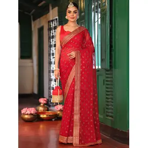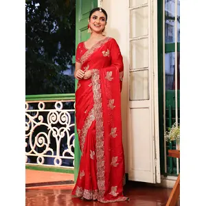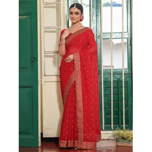 Red Color Embroidery Work Tissue...