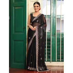 Black Color Embroidery Work Organza...