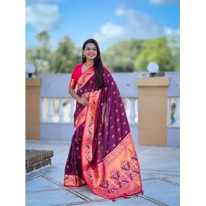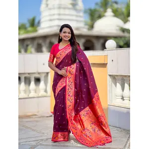 Wine Color Paithani Silk Fabric Woven...