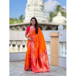 Orange Color Paithani Silk Fabric...