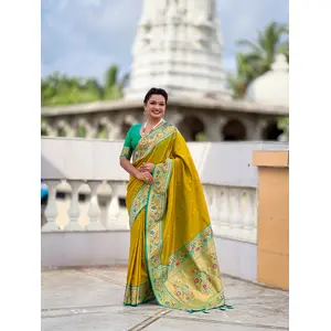 Green Color Paithani Silk Fabric...