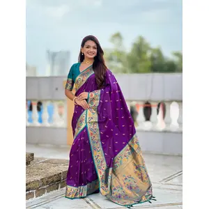 Violet Color Paithani Silk Fabric...