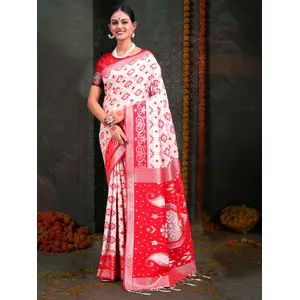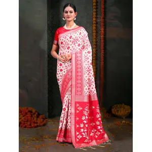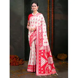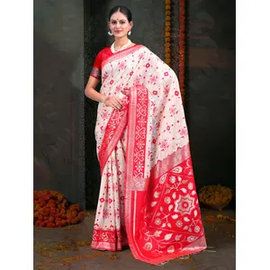 White & Red Color Linen Cotton Wevon...