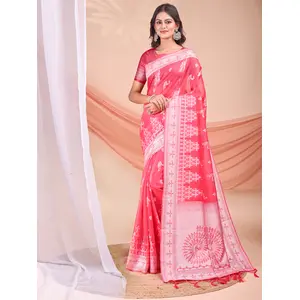 Pink Color Linen Cotton Fabric Wevon...