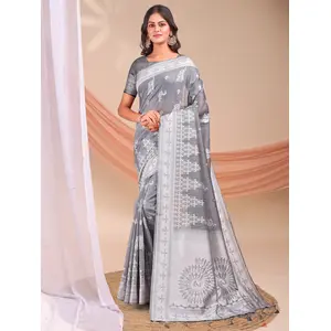Grey Color Linen Cotton Fabric Wevon...