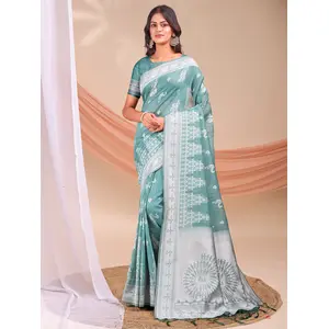 Sea Green Color Linen Cotton Fabric...
