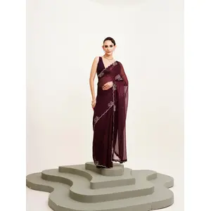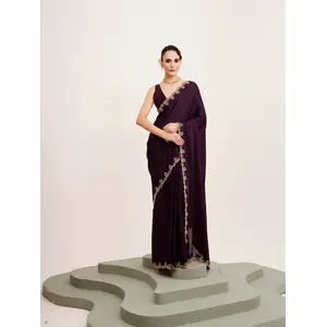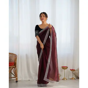 Wine Color Twill Net Fabric Glamorous...