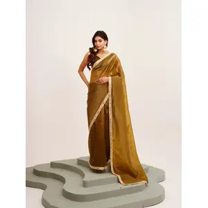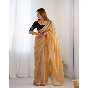 Gold Color Twill Net Fabric Glamorous...