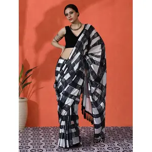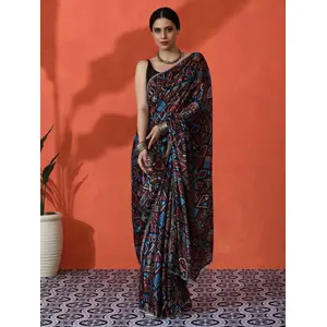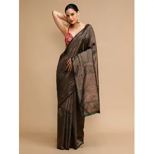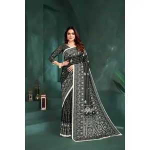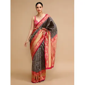 Black Color Lichi Silk Saree Woven...