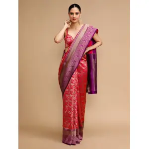 Red Color Lichi Silk Saree Woven...