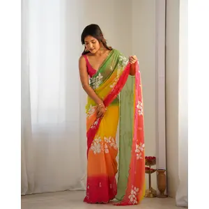 Green Padding Color Georgette Fabric...