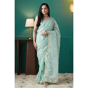 Teal Blue Color Organza Fabric...