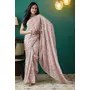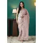 Peach Color Organza Fabric Solid Designer Foil Printed Saree