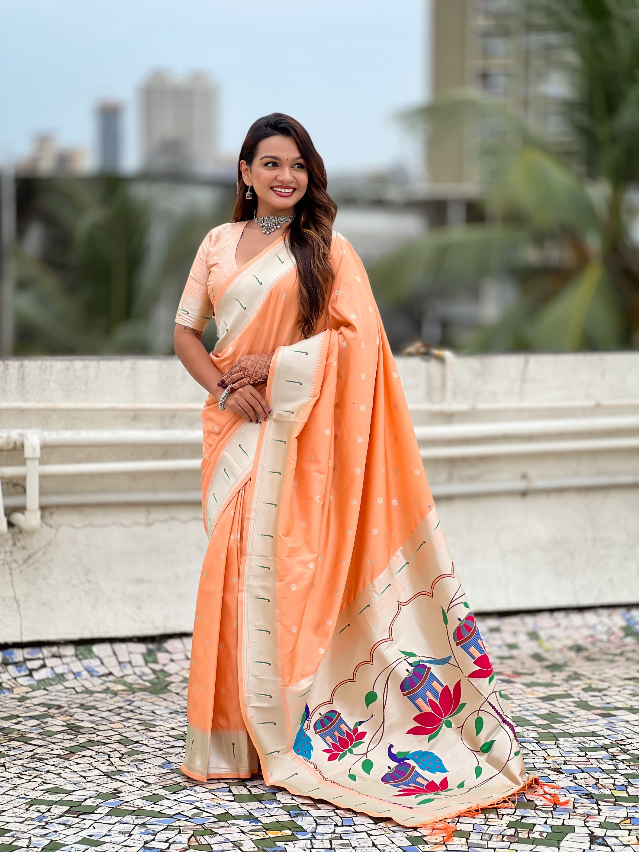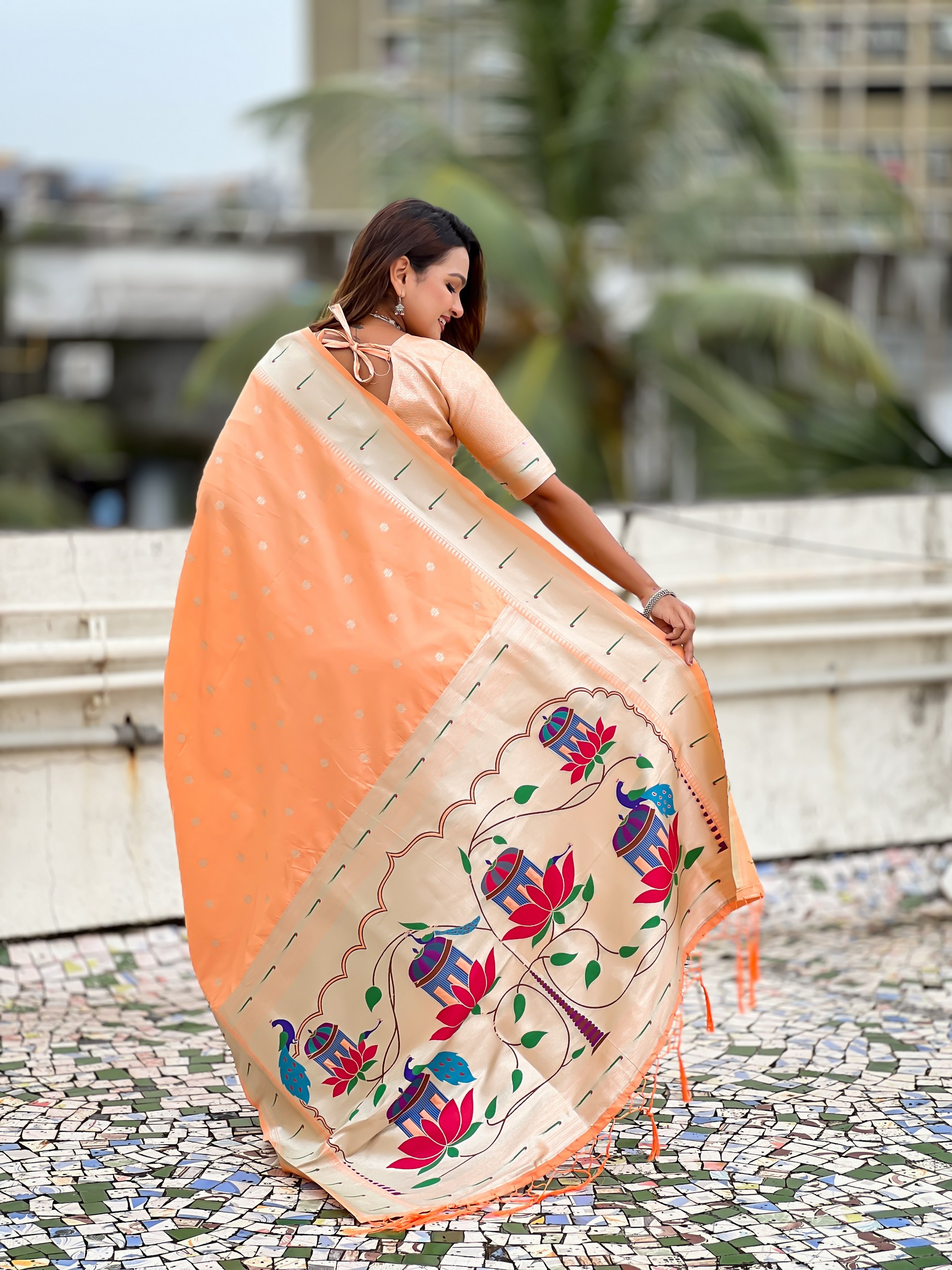 Peach Color Paithani Silk Woven Designer Ceremonial Partywear Saree
