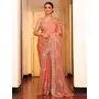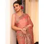 Peach Color Tissue Fabric Embroidery Work Partywear Saree