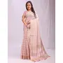 Peach Color Woven Zari Designer Ethnic Organza Fabric Saree